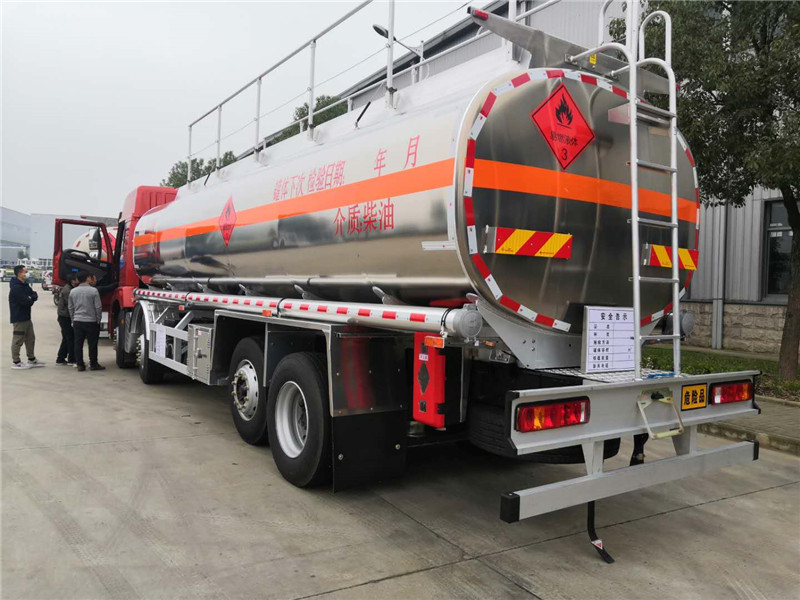 公告容積25.5方 實際容積28.4方 ,運輸介質(柴油,煤油,航空煤油,汽油)滿載可拉23.5噸柴油,總質量31噸,額定載20噸 ,整備質量10.25噸 。單倉帶泵,帶泵進泵出,下裝油全套:歐標罐口,一個海底閥,一個下裝油,一個廢氣回收,一個防溢流探桿及探座,安裝正星大流量加油機及15米卷盤帶加油**,靜電盤,歐式鎖,牌照燈,一個工具箱,安全告示鐵牌,折疊護欄,配一個防火帽,2根輸油管,2個滅火器,(其余廠內標配)。可以加裝流量表,也可以加裝帶大流量加油機(每分鐘加油70升,可帶遙控,可加裝加油卡)