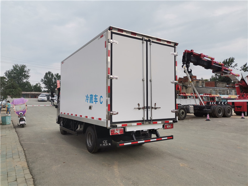 歐馬可S1國六冷藏車,整車型號:BJ5048XLC-F3,底盤型號:BJ1048V9JD6-F3,新款1880mm單排駕駛室,5檔變速箱,康明斯F2.8NS6B1315發動機,130馬力,7.00R16鋼絲胎、空調、車聯網終端、中控鎖、電動門窗、遙控鑰匙、巡航、MP3、多功能方向盤、剎車自調臂、可調大燈,整車尺寸:5995×2340×3220(mm),箱體內尺寸:4080×2**×2**(mm),箱內容積18個立方,箱體材質:內外玻璃鋼,8cm高密度保溫板,底板防滑花紋鋁板,后雙開門,加裝單側門。