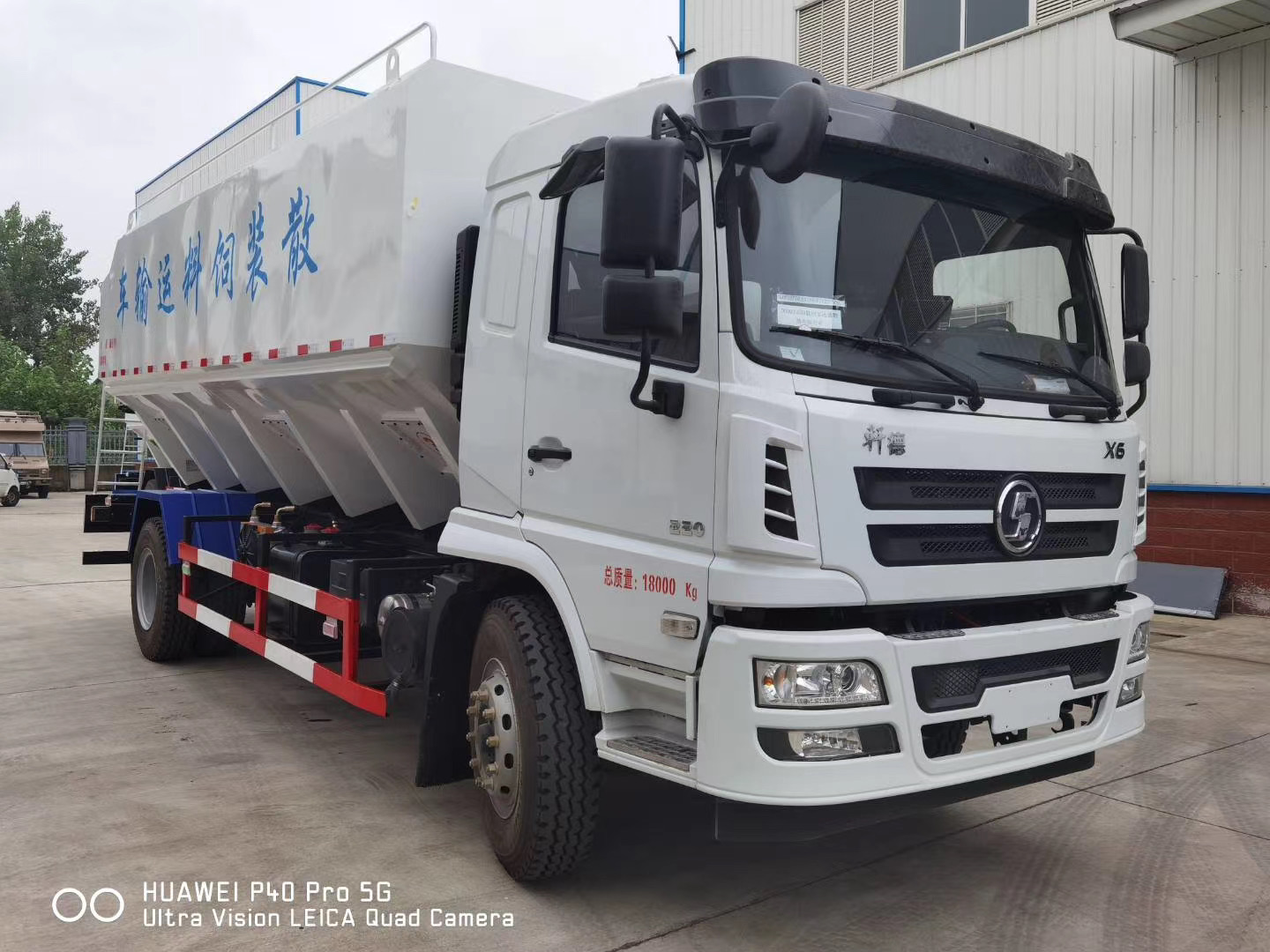 上裝配置:有效容積22-24方,可裝12-14噸,標配3倉,電動絞龍卸料,卸料管傾斜60度,垂直卸料高度8.5米,整車卸料用完時28分鐘。
