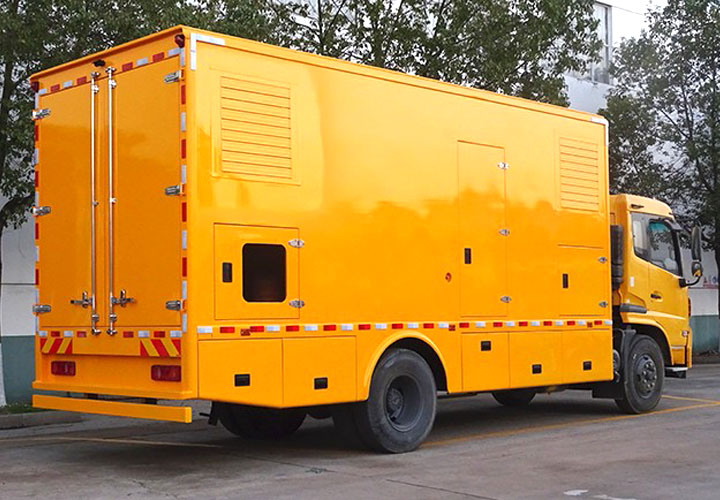 4、柴油發(fā)電機組安裝于廂體內(nèi)部**,處于車輛載重**,保證車輛行駛平穩(wěn)。