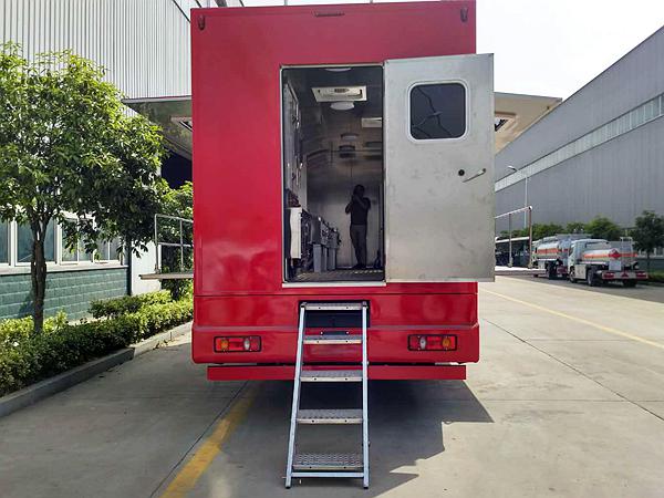 東風天錦底盤、箱體、(外部采用2mm鋁平板、內部1.5mm不銹鋼板)凈水箱(1500L)、污水箱(約260L)、(水、電、油)**系統、汽油發電機、吸水泵、直流自吸油泵、電熱水器、車載冰箱、炒菜灶、燉菜灶、
